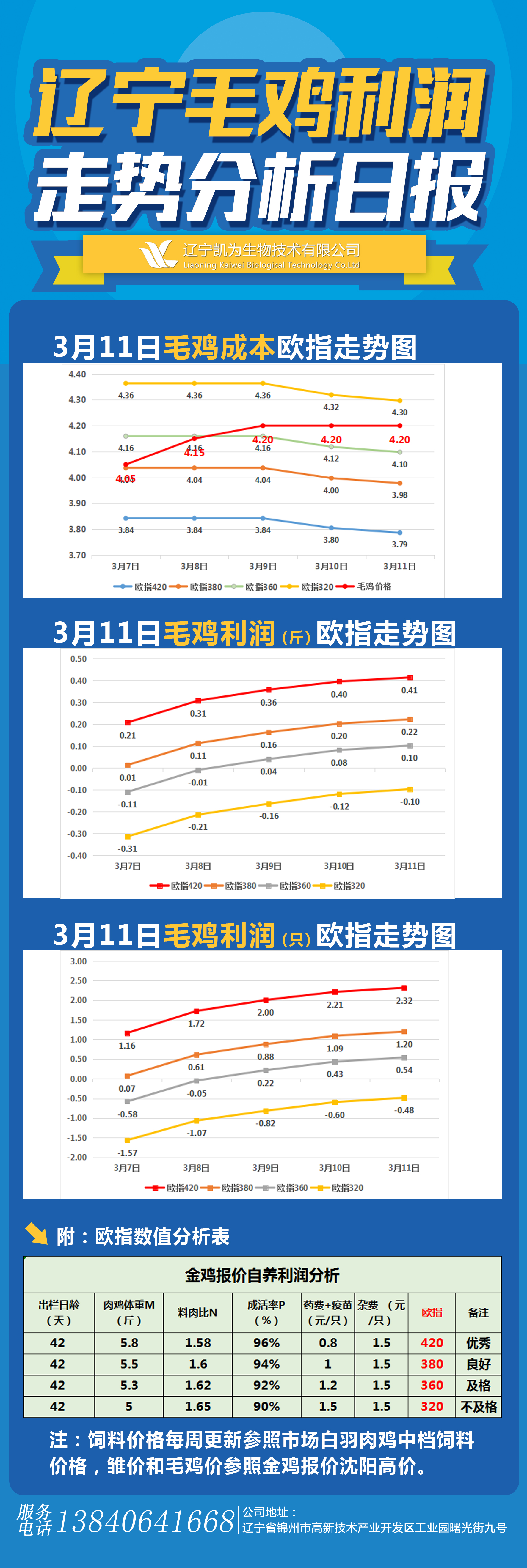 3月11日遼寧地區(qū)毛雞利潤(rùn)走勢(shì)分析圖