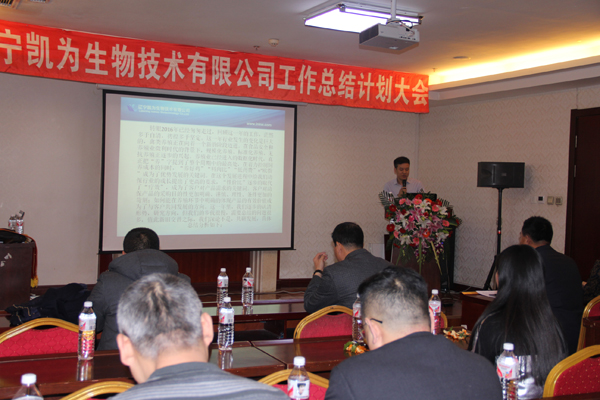 2017年1月6日下午,寒冷冬日,暖陽(yáng)高照,美麗的渤海之濱錦州,遼寧凱為生物技術(shù)有限公司2016年工作總結(jié)和2017年工作計(jì)劃大會(huì)在華信大廈會(huì)議廳隆重舉行,遼寧凱為自2005年創(chuàng)建以來,歷時(shí)11年的發(fā)展歷程,我們積累了經(jīng)驗(yàn),也展示了多年的成果,展望2017年未來的發(fā)展重點(diǎn)和方向,現(xiàn)在,凱為人踏著夢(mèng)想而來,滿載而歸。未來,凱為人堅(jiān)定地為公司添磚加瓦、壘筑高臺(tái),讓夢(mèng)想更加豐滿,讓基業(yè)更加長(zhǎng)青。整個(gè)會(huì)議歷時(shí)三個(gè)小時(shí),包括總經(jīng)理王鐵良先生作年度工作總結(jié)、計(jì)劃報(bào)告,銷售部總經(jīng)理趙福寬先生作銷售部年度工作總結(jié)、計(jì)劃報(bào)告,優(yōu)秀員工表彰等環(huán)節(jié)。會(huì)議進(jìn)行中,掌聲數(shù)次響起,整個(gè)會(huì)場(chǎng)始終洋溢著振奮、進(jìn)取、熱烈的氣氛,精彩紛呈,亮點(diǎn)鮮明。