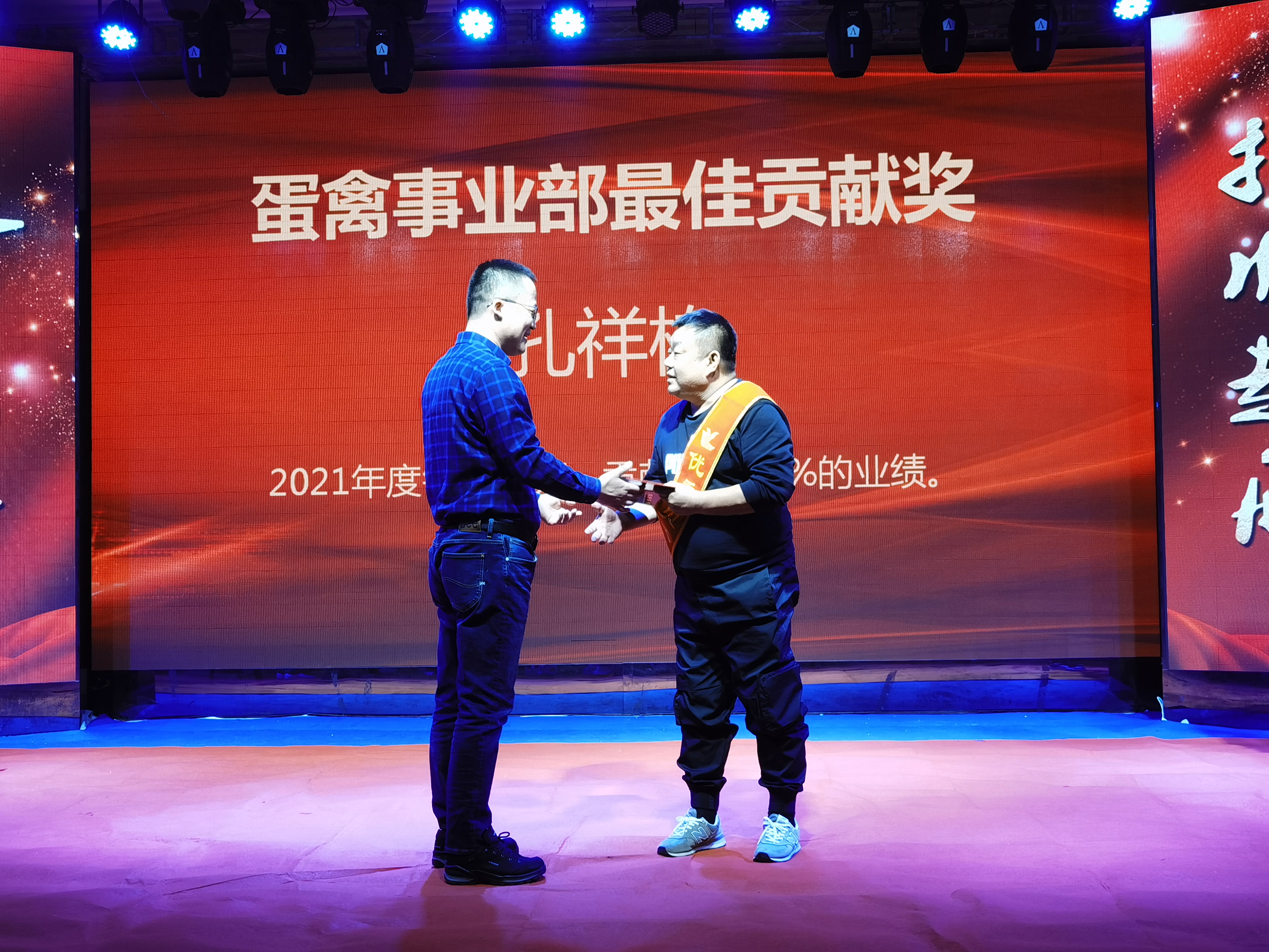 李榮久獲得年度銷售亞軍,2021年他和技術(shù)部李總服務(wù)了錦州周邊10余個大型養(yǎng)殖場,無數(shù)個星辰雨夜,多少次寒風(fēng)冷雪都有著他們的身影的穿梭。精誠所至,金石為開,他用拼搏精神再次創(chuàng)造了年度銷售的奇跡。公司總裁王鐵良為獲獎?wù)?/span>頒獎