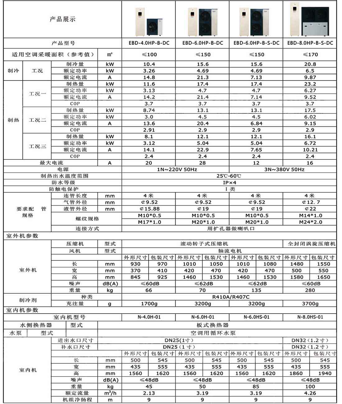 (2)①制熱:DB20℃/WB15℃,進(jìn)水溫度15℃,出水溫度55℃;